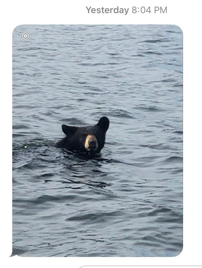 “This young Black Bear was caught on film by Harvey Wolf while fishing in Radke Bay on 8/13/2020”